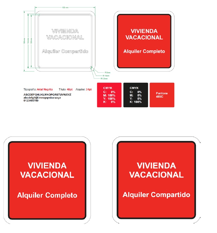 a) Exhibir, en el exterior de la puerta de acceso de la vivienda de uso turístico, la placa identificativa conforme Anexo III.